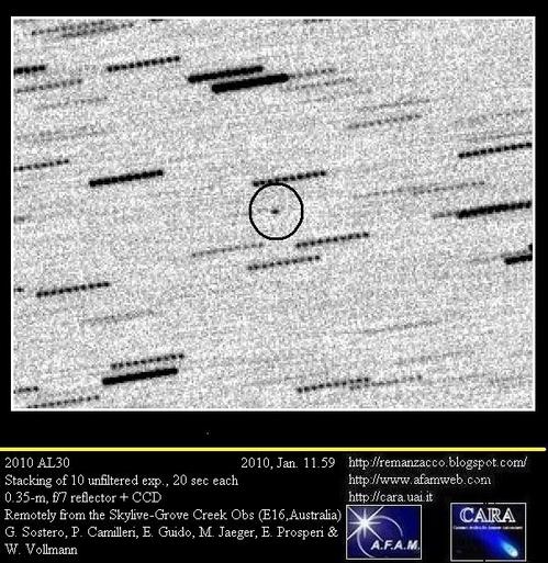 Mal sehen – es gibt sicher jede Menge Astronomen, die heute 2010 AL30 beobachten. Morgen werden wir wohl genauer wissen um was es sich handelt.