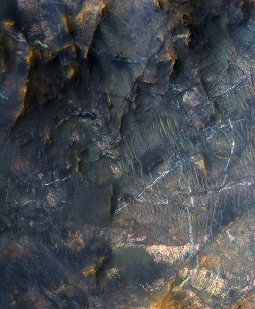Vor einiger Zeit hatte ich schon mal das Bild des bunten Kraters gezeigt. Auch diese Aufnahme von HiRISE ist schön bunt: