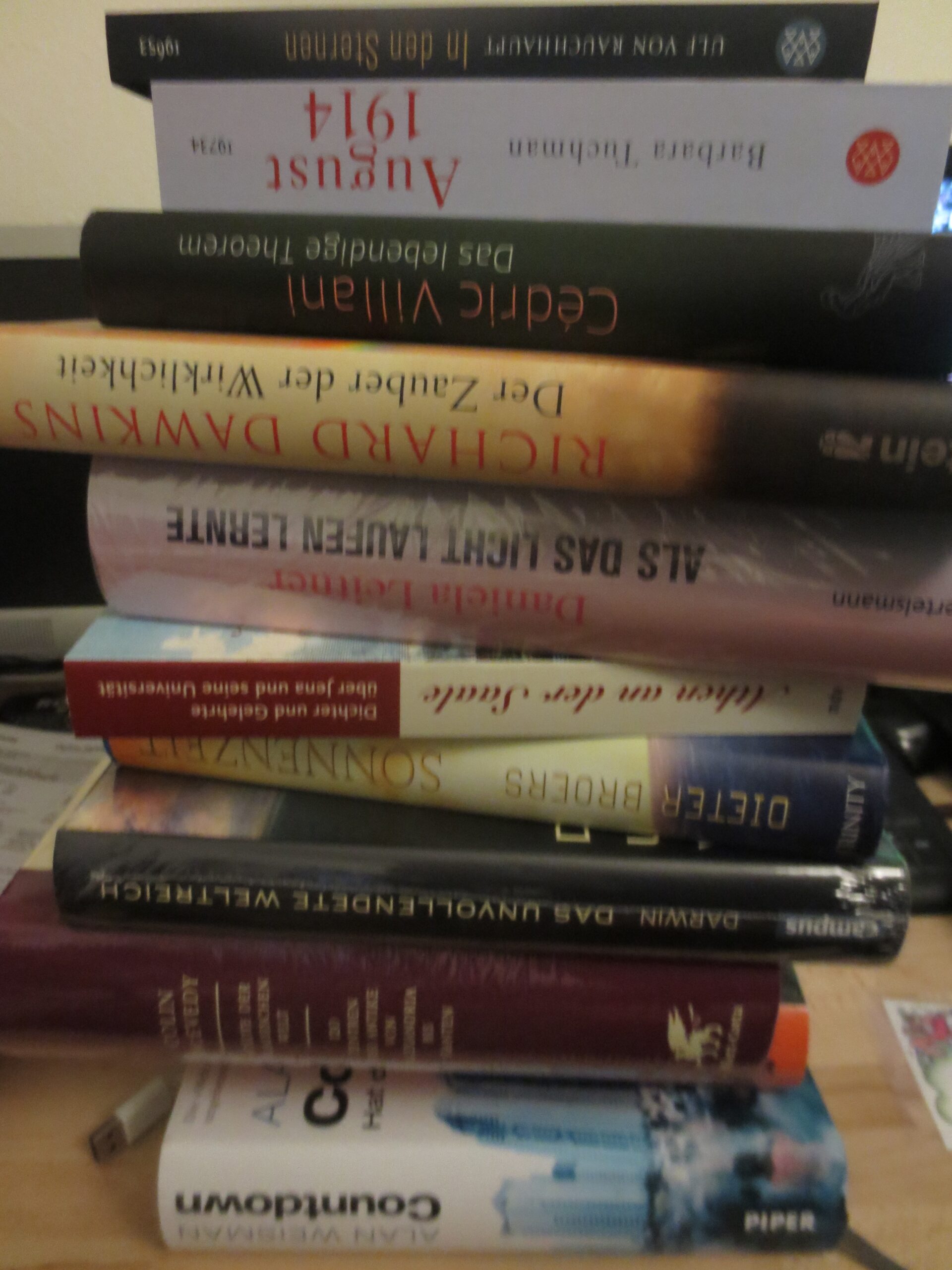 15. Ich melde auch Interesse an, vor allem wenn es auch um Bücher zur Geschichte (ich erinnere z.B. an „Mittelmeer“ oder „August 1914“ aus Deinem Bücherstapel) oder Philosophie im weitesten Sinne geht (Dennett, Pinker, usw.).