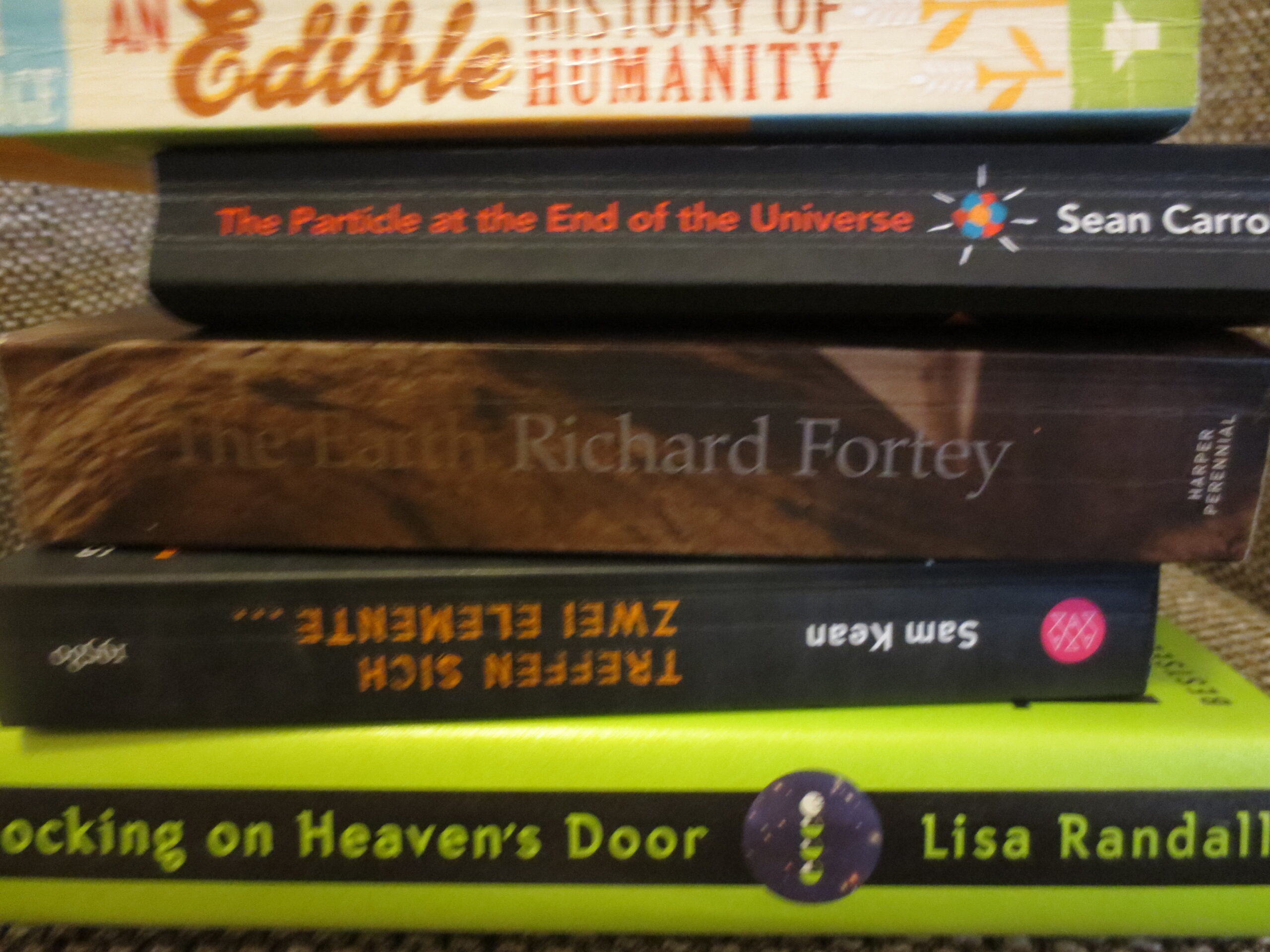 - „Treffen sich zwei Elemente …: Verblüffende Geschichten aus der Welt der Chemie“ von Sam Kean. Ein Buch über Chemie wollte ich auch noch in der Liste haben und da das hier schon seit einiger Zeit ungelesen bei mir herum liegt, habe ich mich dafür entschieden.