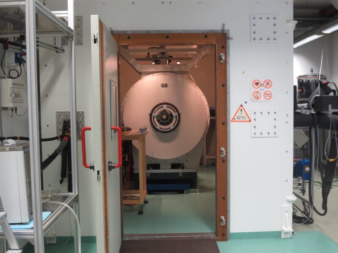 Dort findet man die Fische im Keller. Hier werden sie zumindest untersucht und zwar in einer ganz speziellen Maschine. Ob ich einen Herzschrittmacher habe, möchte man wissen, bevor ich das Labor betreten darf. Zum Glück nicht, und solange ich mich von den grün markierten Bereichen fern halte, sollten auch meine diversen elektronischen Geräte keinen Schaden nehmen, wie mir erklärt wird, nachdem ich eingetreten bin. Die Gefahr für mein Handy und die Speicherkarte meines Fotoapparats geht von einem großen Kernspintomographen aus, der ein Magnetfeld mit einer Stärke von 4,7 Tesla (etwa 100.000 mal stärker als das Magnetfeld der Erde) erzeugt. Im Prinzip handelt es sich um die gleichen Geräte, die man auch in einem Krankenhaus findet, nur das hier keine menschlichen Patienten untersucht werden, sondern Fische. Zur Zeit ist es Kabeljau.