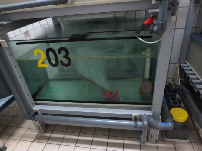 Ein ruhiges Leben haben die Fische allerdings auch wieder nicht. Die Übersäuerung der Meere verändert die Art und Weise, wie sie ihren Energiehaushalt gestalten können. Und um das zu untersuchen, werden sie in einen Strömungskanal gesteckt und müssen zeigen, wie lange sie unter bestimmten Bedingungen schwimmen können. Je schneller die Strömung ist, desto mehr Energie kostet sie das und irgendwann schaffen sie das mit ihrem normalen aeroben Schwimmmodus nicht mehr. Ihren Normalmodus können sie im Prinzip beliebig lange aufrecht erhalten – wenn sie aber nun zum anaeroben Schwimmmodus wechseln müssen, wird es kritisch. Der ist eigentlich nur für die Jagd und die Flucht gedacht und nicht für den Dauerbetrieb. Irgendwann kann der Fisch im Strömungskanal nicht mehr und muss aufgeben. Wie lange die Tiere durchhalten, hängt von der Temperatur und dem CO2-Gehalt ab. Die Fische brauchen mehr Energie für ihren Metabolismus und haben weniger für Wachstum und Fortpflanzung übrig. Sie wachsen langsamer, werden nicht so groß und eher von ihren Fressfeinden gefangen. Das Fitness-Programm für den Kabeljau zeigt, dass es bestimmte Arten in Zukunft deutlich schwerer haben werden, in ihrer veränderten Umgebung zu erleben (Man hat mir übrigens versichert, dass im Strömungskanal nach Feierabend keine Fischwettrennen veranstaltet werden…).