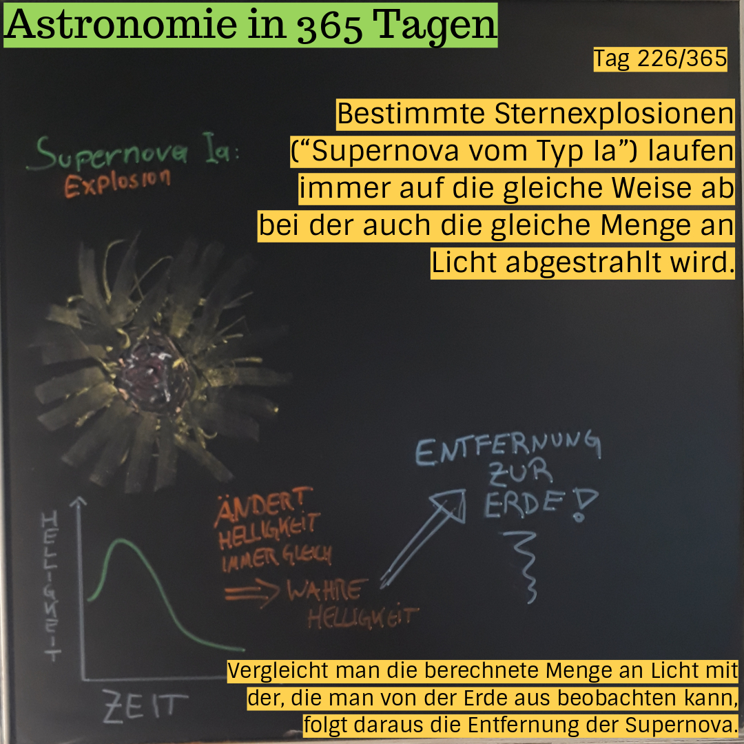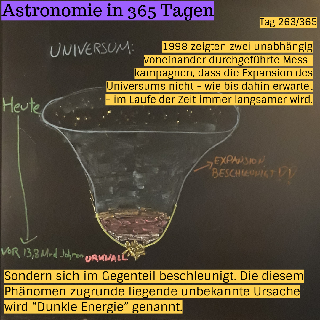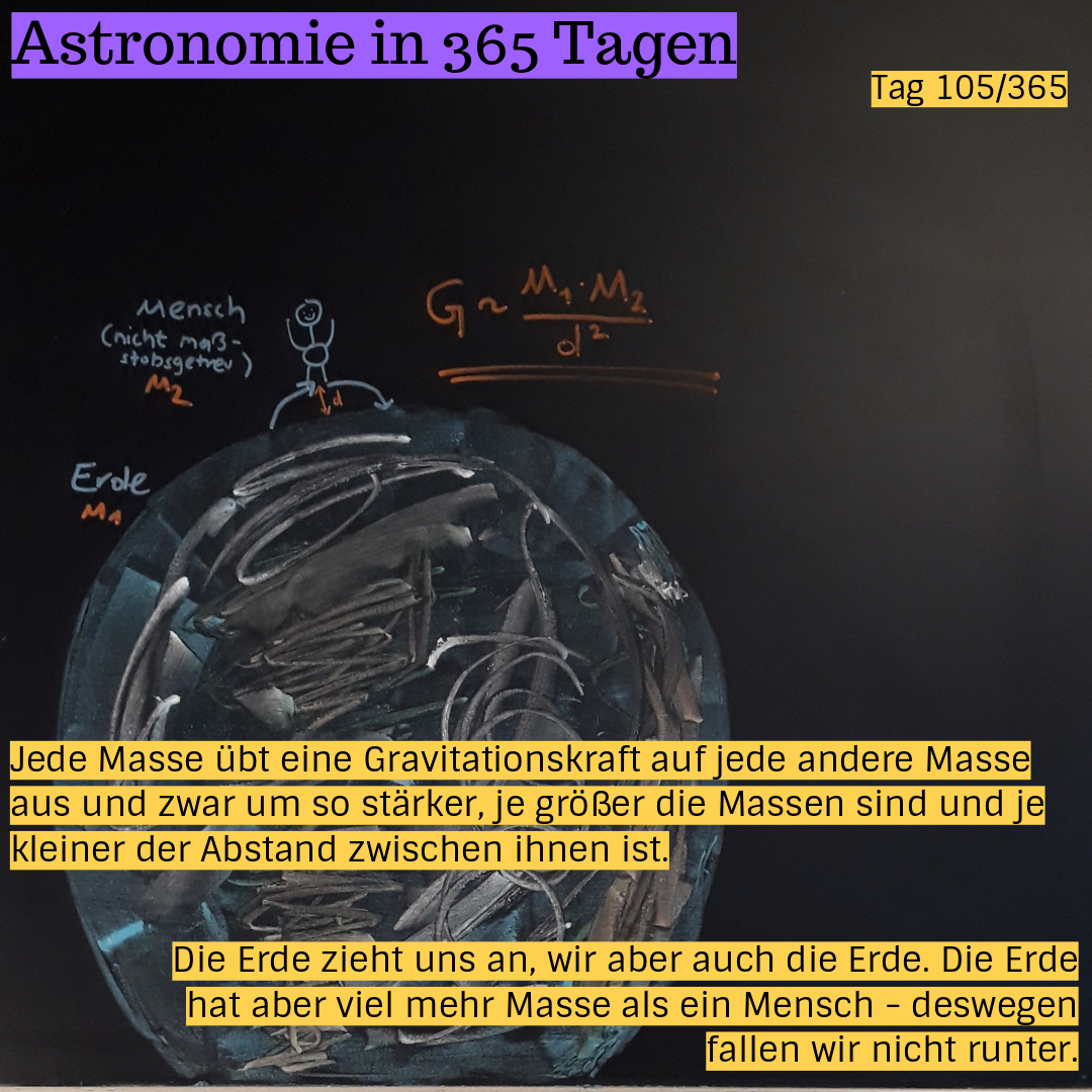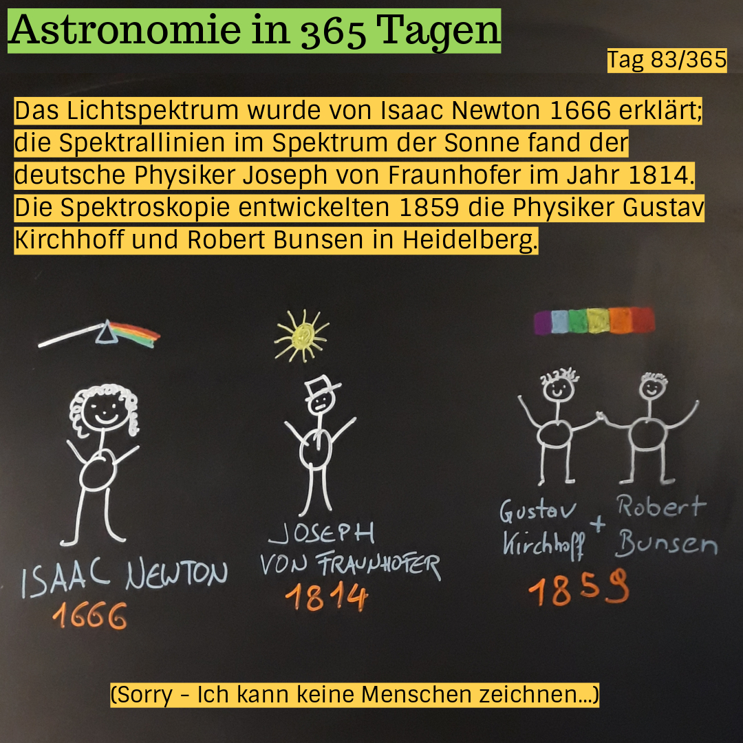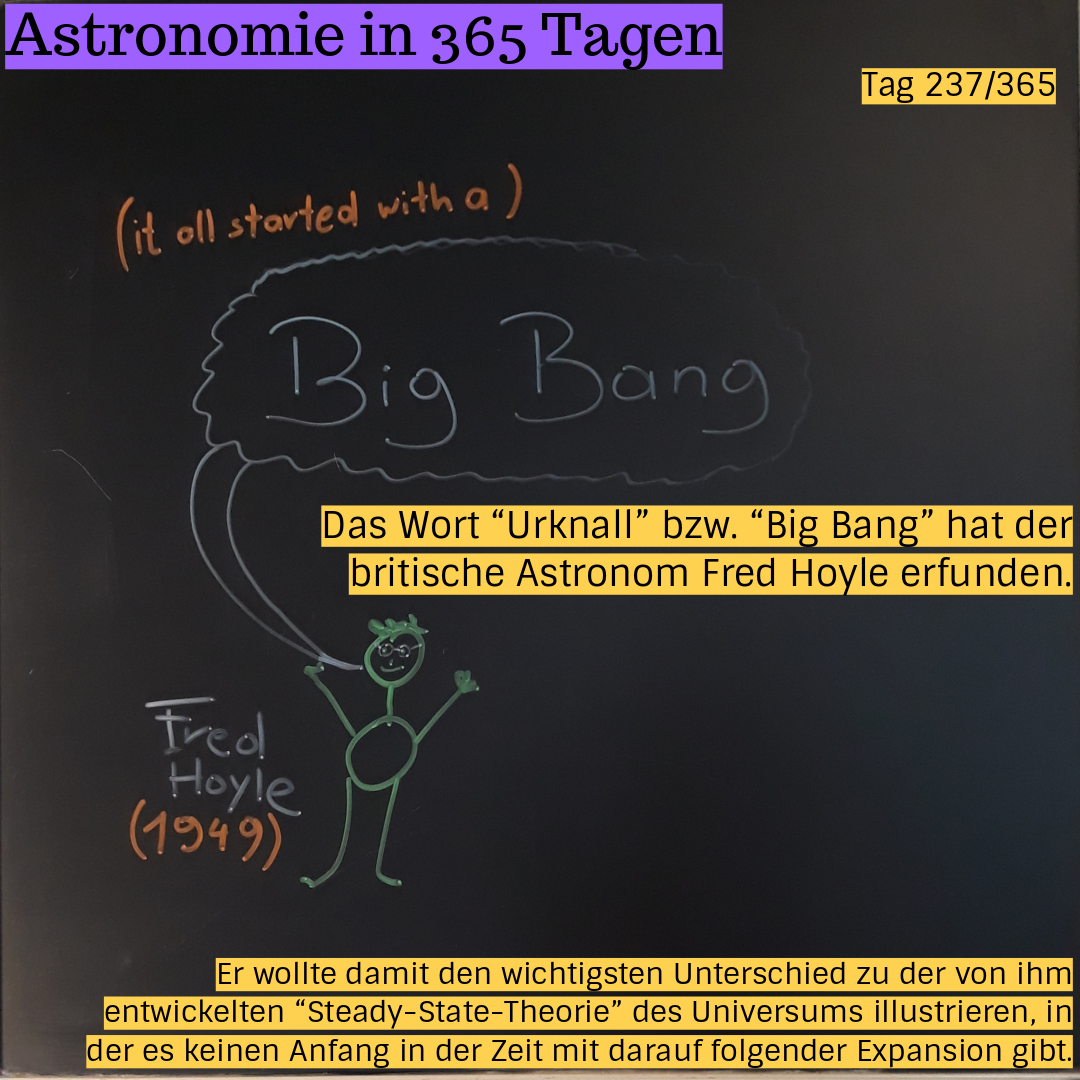 Also habe ich mich entschieden meinen Instagram-Account nicht mehr nur wie bisher dazu zu nutzen, ziemlich wahllose Sammlungen an Fotos meiner diversen Reisen, Auftritte und anderer Aktivitäten zu posten. Sondern ein echtes Konzept zu entwickeln wie man dort Wissenschaft vermitteln kann. Was mich vor ein kleines Problem gestellt hat: Instagram ist ein Medium das fast nur visuell arbeitet. Bilder sind alles und Text spielt kaum eine Rolle. Ich bin visuell aber eher unbegabt und es ist kein Zufall, dass sich meine Arbeit bis dahin so gut wie nur auf Texte (bzw. gesprochenen Text in meinen Podcasts) beschränkt hat. Ich bin nicht gut darin zu fotografieren und zeichnen kann ich auch nicht. Zuerst dachte ich, ich sammle einfach ein paar interessante Fakten über die Astronomie und bebildere die dann mit frei verfügbaren Fotos und Diagrammen aus dem Internet. Aber das erschien mir dann irgendwie wenig originell. Und an meiner Wand hing schon seit langem eine nette Kreidetafel mit der ich bis jetzt nicht viel anzufangen wusste. Wenn schon malen, dann mit Kreide auf einer Tafel, hab ich mir gedacht. Denn das ist vermutlich von allem Möglichkeiten diejenige, bei der mein fehlendes zeichnerisches Talent am wenigsten auffällt. Und außerdem kann ich die Bilder ja nachträglich noch mit ein wenig grafischem Text „verbessern“.