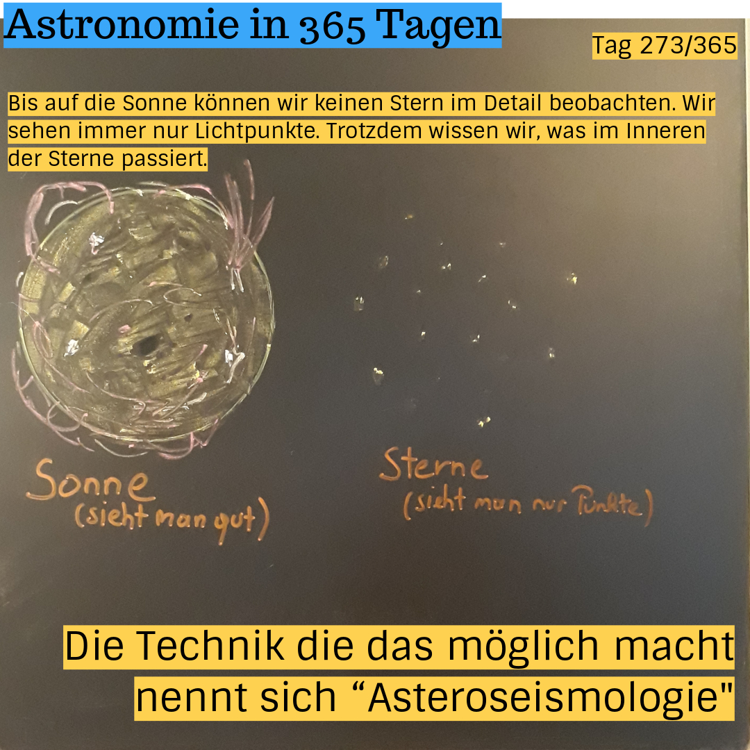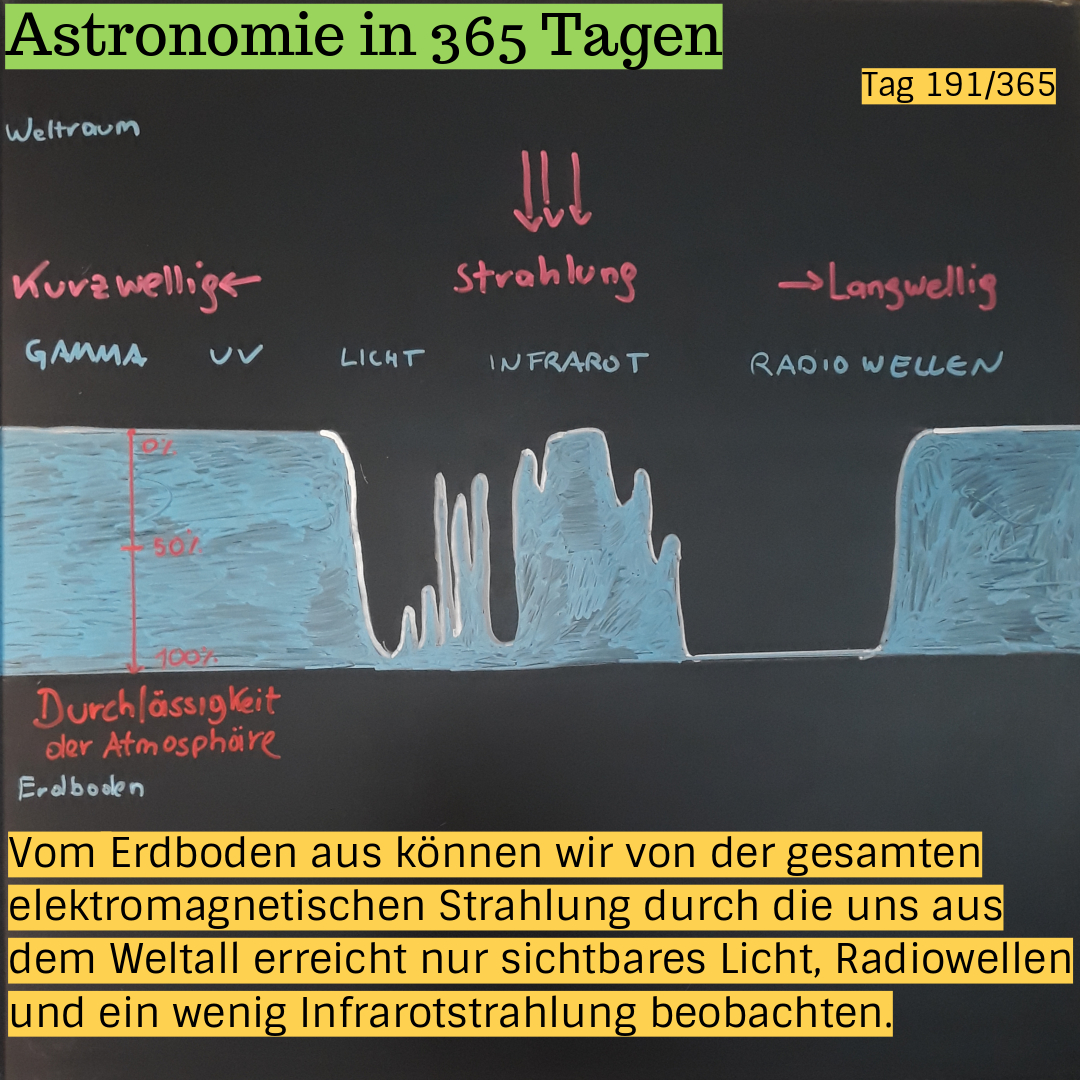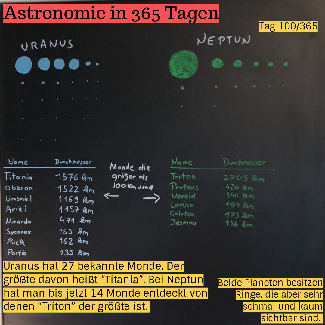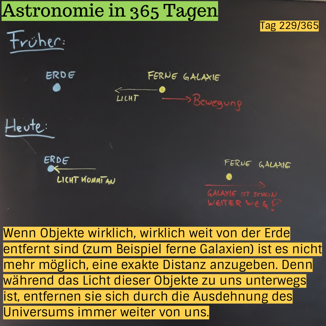 Also habe ich mich entschieden meinen Instagram-Account nicht mehr nur wie bisher dazu zu nutzen, ziemlich wahllose Sammlungen an Fotos meiner diversen Reisen, Auftritte und anderer Aktivitäten zu posten. Sondern ein echtes Konzept zu entwickeln wie man dort Wissenschaft vermitteln kann. Was mich vor ein kleines Problem gestellt hat: Instagram ist ein Medium das fast nur visuell arbeitet. Bilder sind alles und Text spielt kaum eine Rolle. Ich bin visuell aber eher unbegabt und es ist kein Zufall, dass sich meine Arbeit bis dahin so gut wie nur auf Texte (bzw. gesprochenen Text in meinen Podcasts) beschränkt hat. Ich bin nicht gut darin zu fotografieren und zeichnen kann ich auch nicht. Zuerst dachte ich, ich sammle einfach ein paar interessante Fakten über die Astronomie und bebildere die dann mit frei verfügbaren Fotos und Diagrammen aus dem Internet. Aber das erschien mir dann irgendwie wenig originell. Und an meiner Wand hing schon seit langem eine nette Kreidetafel mit der ich bis jetzt nicht viel anzufangen wusste. Wenn schon malen, dann mit Kreide auf einer Tafel, hab ich mir gedacht. Denn das ist vermutlich von allem Möglichkeiten diejenige, bei der mein fehlendes zeichnerisches Talent am wenigsten auffällt. Und außerdem kann ich die Bilder ja nachträglich noch mit ein wenig grafischem Text „verbessern“.