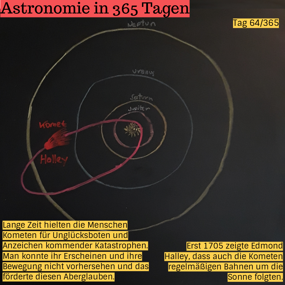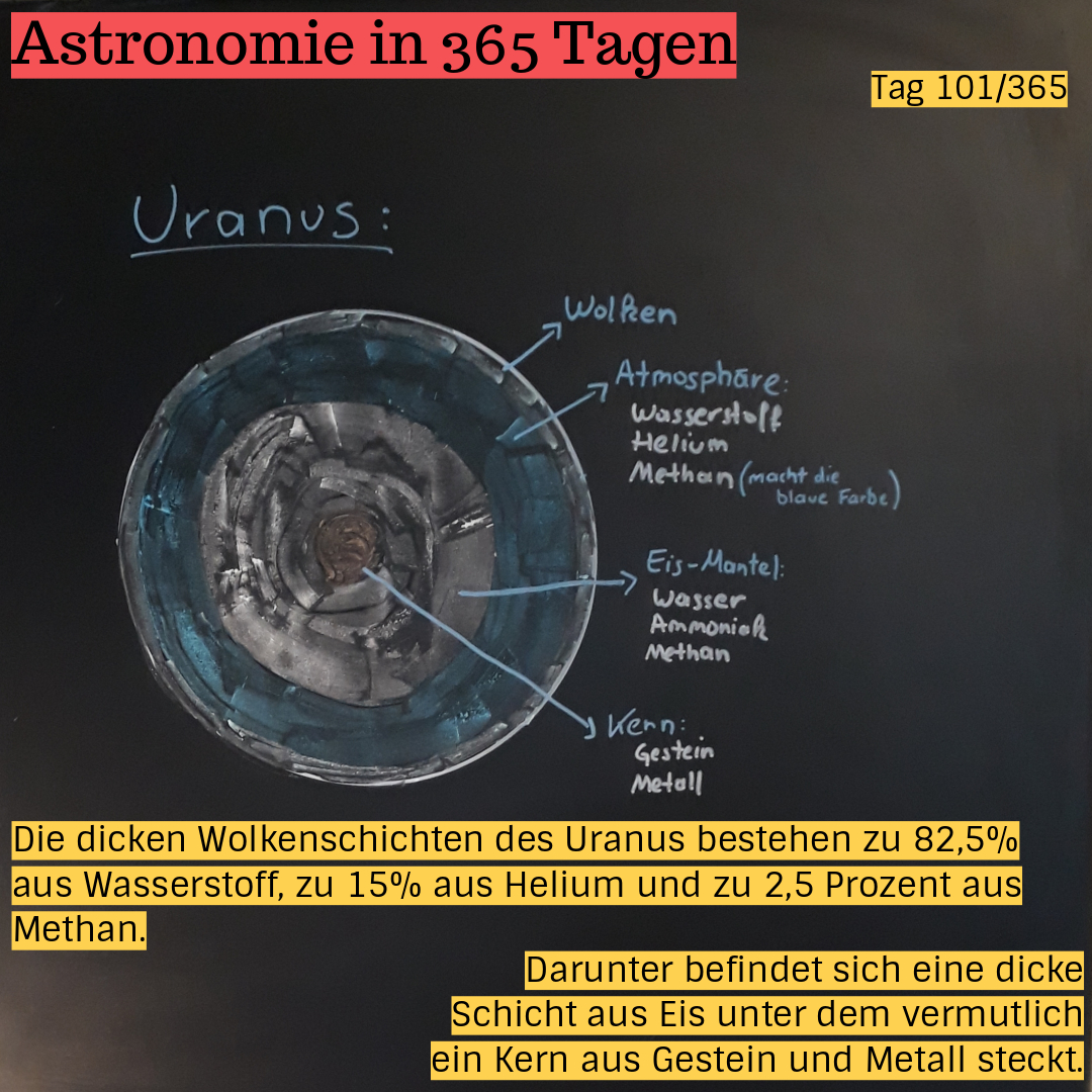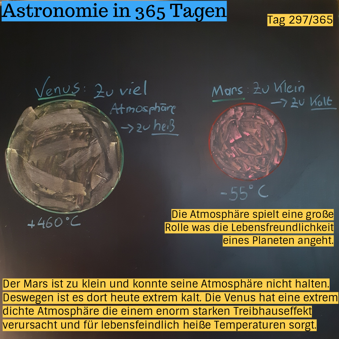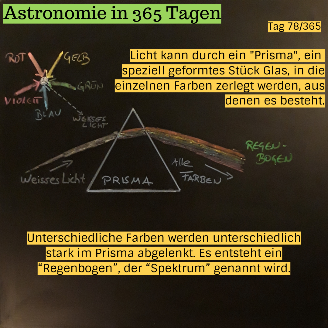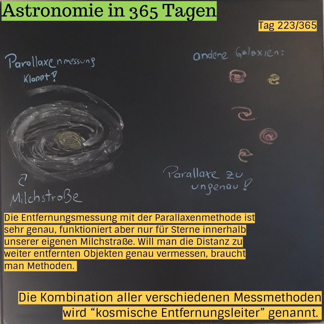 Also habe ich mich entschieden meinen Instagram-Account nicht mehr nur wie bisher dazu zu nutzen, ziemlich wahllose Sammlungen an Fotos meiner diversen Reisen, Auftritte und anderer Aktivitäten zu posten. Sondern ein echtes Konzept zu entwickeln wie man dort Wissenschaft vermitteln kann. Was mich vor ein kleines Problem gestellt hat: Instagram ist ein Medium das fast nur visuell arbeitet. Bilder sind alles und Text spielt kaum eine Rolle. Ich bin visuell aber eher unbegabt und es ist kein Zufall, dass sich meine Arbeit bis dahin so gut wie nur auf Texte (bzw. gesprochenen Text in meinen Podcasts) beschränkt hat. Ich bin nicht gut darin zu fotografieren und zeichnen kann ich auch nicht. Zuerst dachte ich, ich sammle einfach ein paar interessante Fakten über die Astronomie und bebildere die dann mit frei verfügbaren Fotos und Diagrammen aus dem Internet. Aber das erschien mir dann irgendwie wenig originell. Und an meiner Wand hing schon seit langem eine nette Kreidetafel mit der ich bis jetzt nicht viel anzufangen wusste. Wenn schon malen, dann mit Kreide auf einer Tafel, hab ich mir gedacht. Denn das ist vermutlich von allem Möglichkeiten diejenige, bei der mein fehlendes zeichnerisches Talent am wenigsten auffällt. Und außerdem kann ich die Bilder ja nachträglich noch mit ein wenig grafischem Text „verbessern“.