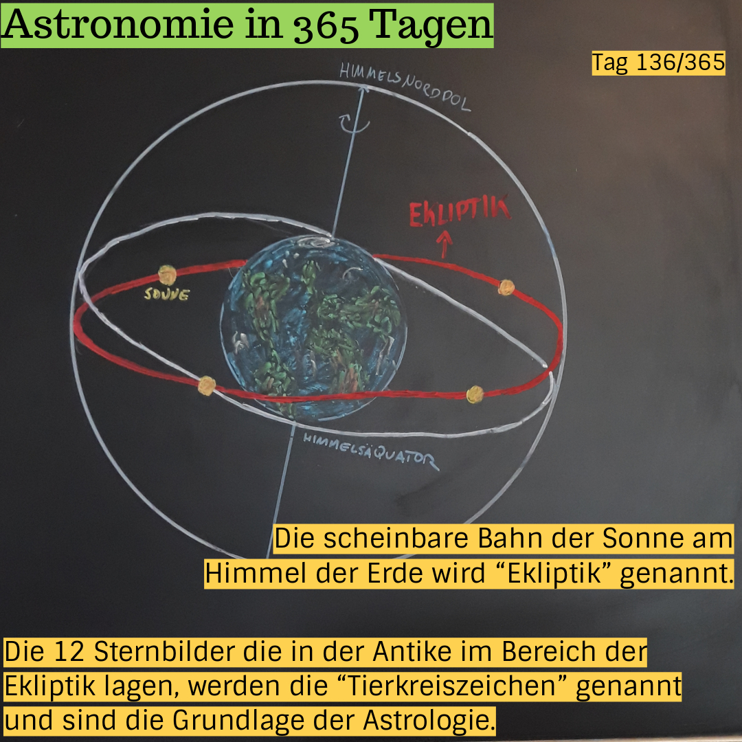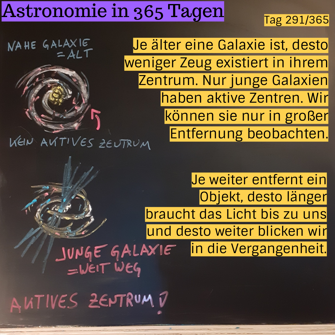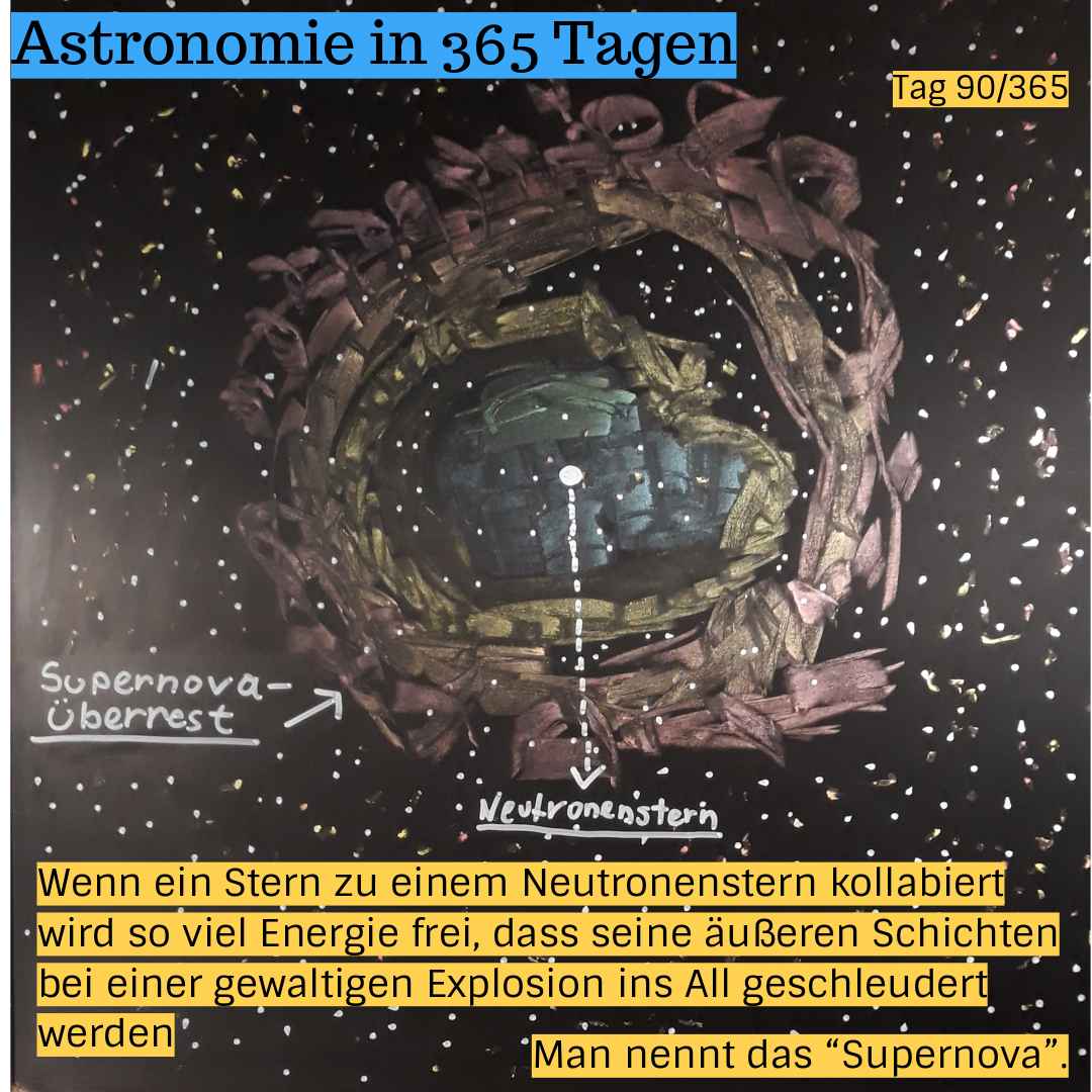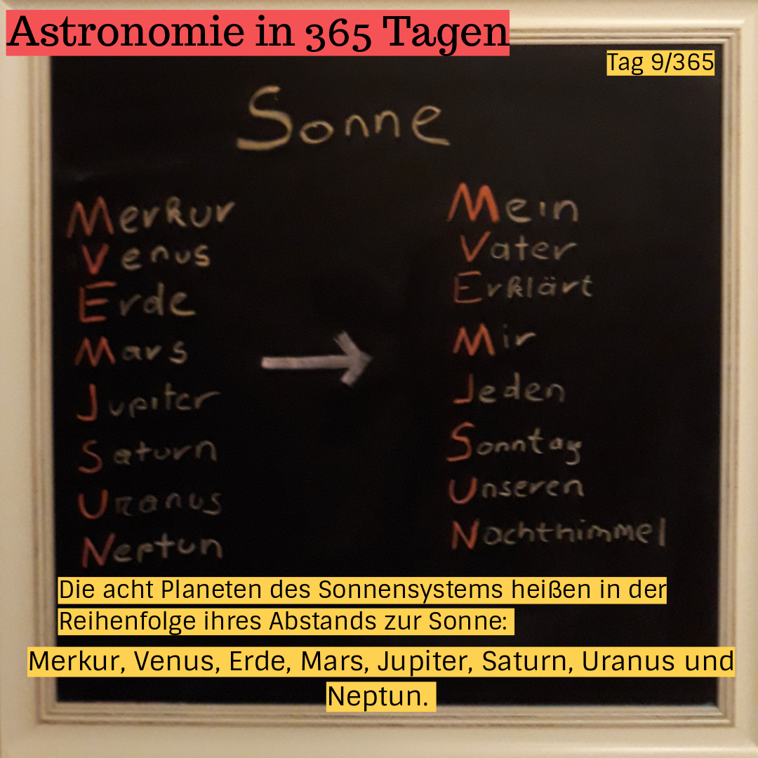 Also habe ich mich entschieden meinen Instagram-Account nicht mehr nur wie bisher dazu zu nutzen, ziemlich wahllose Sammlungen an Fotos meiner diversen Reisen, Auftritte und anderer Aktivitäten zu posten. Sondern ein echtes Konzept zu entwickeln wie man dort Wissenschaft vermitteln kann. Was mich vor ein kleines Problem gestellt hat: Instagram ist ein Medium das fast nur visuell arbeitet. Bilder sind alles und Text spielt kaum eine Rolle. Ich bin visuell aber eher unbegabt und es ist kein Zufall, dass sich meine Arbeit bis dahin so gut wie nur auf Texte (bzw. gesprochenen Text in meinen Podcasts) beschränkt hat. Ich bin nicht gut darin zu fotografieren und zeichnen kann ich auch nicht. Zuerst dachte ich, ich sammle einfach ein paar interessante Fakten über die Astronomie und bebildere die dann mit frei verfügbaren Fotos und Diagrammen aus dem Internet. Aber das erschien mir dann irgendwie wenig originell. Und an meiner Wand hing schon seit langem eine nette Kreidetafel mit der ich bis jetzt nicht viel anzufangen wusste. Wenn schon malen, dann mit Kreide auf einer Tafel, hab ich mir gedacht. Denn das ist vermutlich von allem Möglichkeiten diejenige, bei der mein fehlendes zeichnerisches Talent am wenigsten auffällt. Und außerdem kann ich die Bilder ja nachträglich noch mit ein wenig grafischem Text „verbessern“.