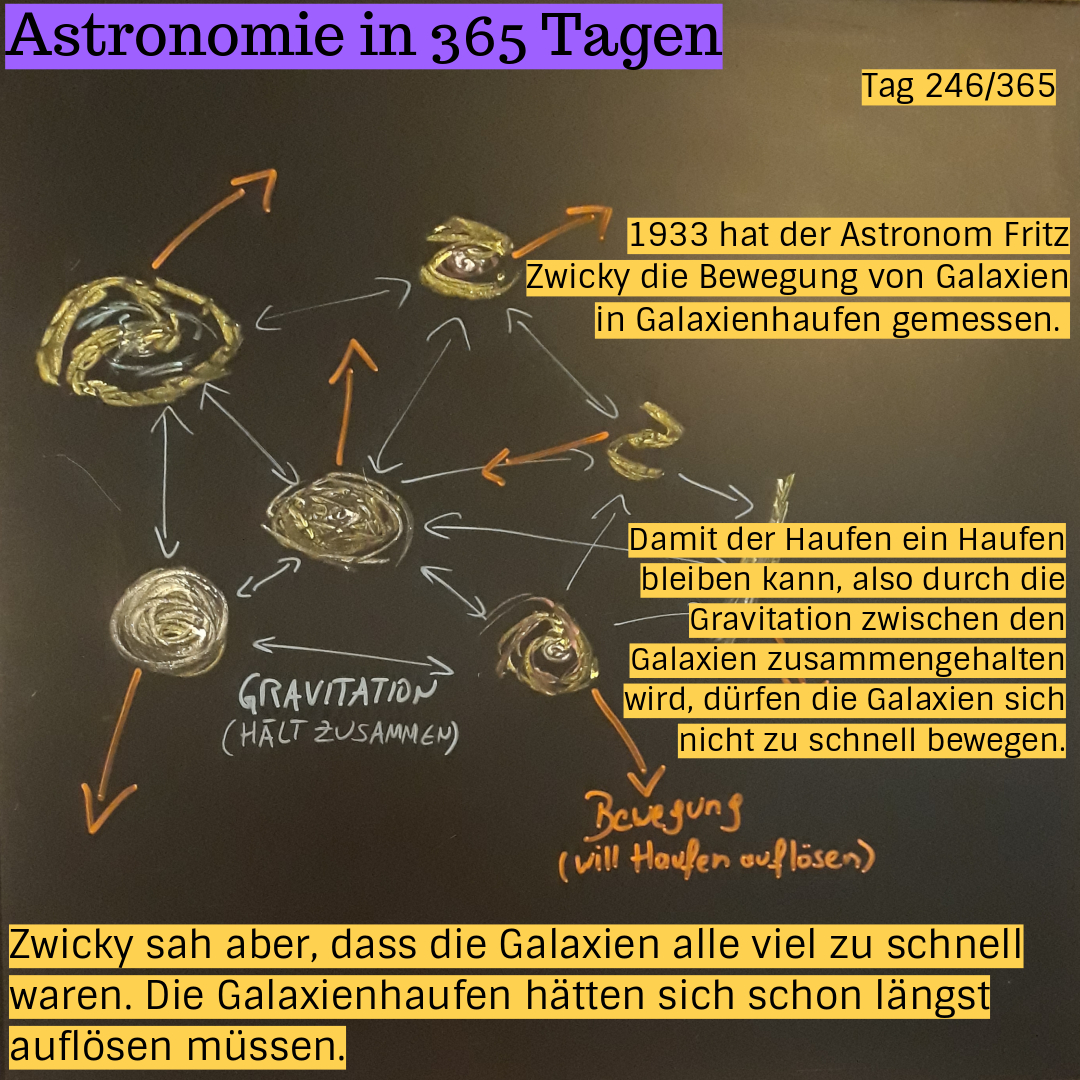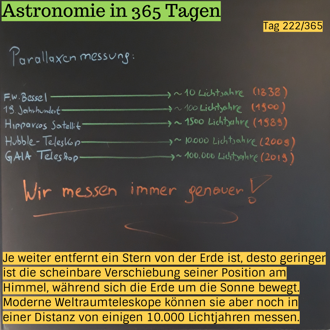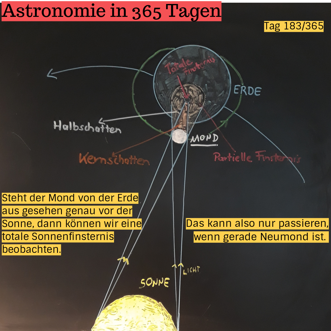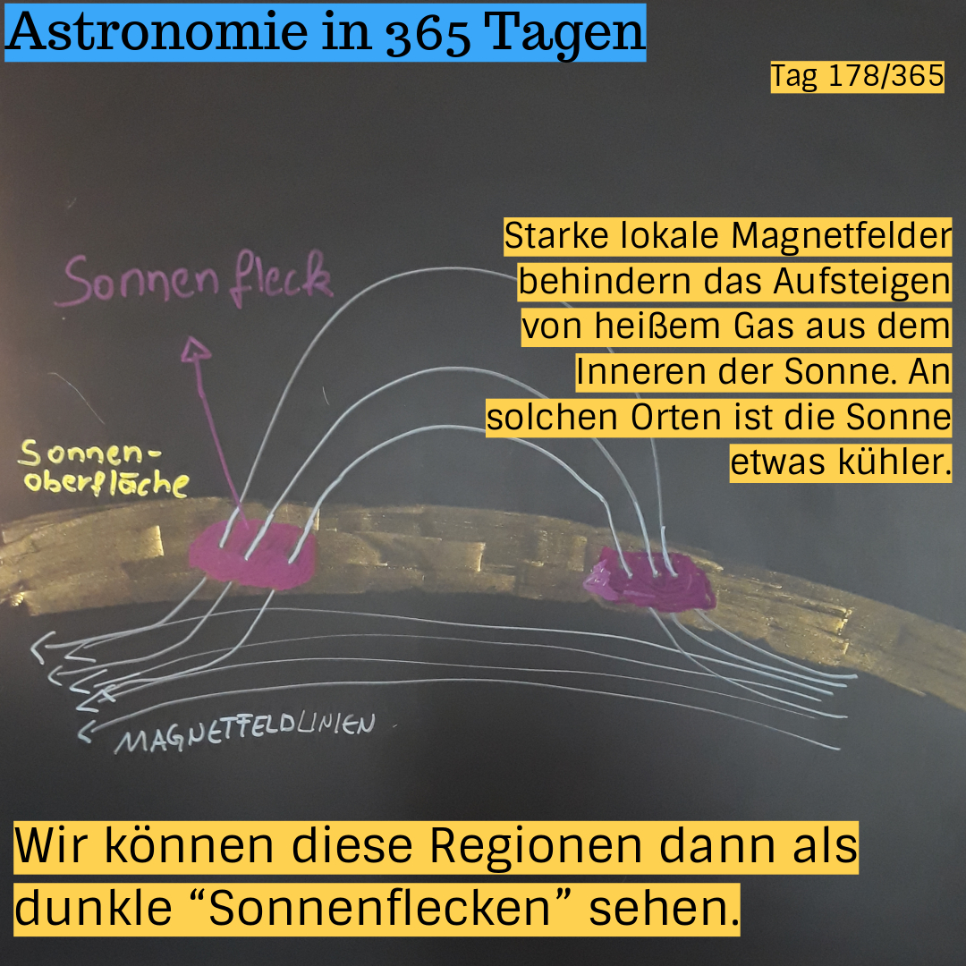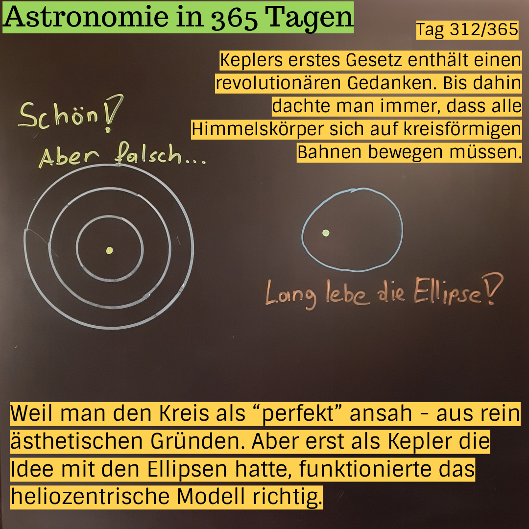 Also habe ich mich entschieden meinen Instagram-Account nicht mehr nur wie bisher dazu zu nutzen, ziemlich wahllose Sammlungen an Fotos meiner diversen Reisen, Auftritte und anderer Aktivitäten zu posten. Sondern ein echtes Konzept zu entwickeln wie man dort Wissenschaft vermitteln kann. Was mich vor ein kleines Problem gestellt hat: Instagram ist ein Medium das fast nur visuell arbeitet. Bilder sind alles und Text spielt kaum eine Rolle. Ich bin visuell aber eher unbegabt und es ist kein Zufall, dass sich meine Arbeit bis dahin so gut wie nur auf Texte (bzw. gesprochenen Text in meinen Podcasts) beschränkt hat. Ich bin nicht gut darin zu fotografieren und zeichnen kann ich auch nicht. Zuerst dachte ich, ich sammle einfach ein paar interessante Fakten über die Astronomie und bebildere die dann mit frei verfügbaren Fotos und Diagrammen aus dem Internet. Aber das erschien mir dann irgendwie wenig originell. Und an meiner Wand hing schon seit langem eine nette Kreidetafel mit der ich bis jetzt nicht viel anzufangen wusste. Wenn schon malen, dann mit Kreide auf einer Tafel, hab ich mir gedacht. Denn das ist vermutlich von allem Möglichkeiten diejenige, bei der mein fehlendes zeichnerisches Talent am wenigsten auffällt. Und außerdem kann ich die Bilder ja nachträglich noch mit ein wenig grafischem Text „verbessern“.