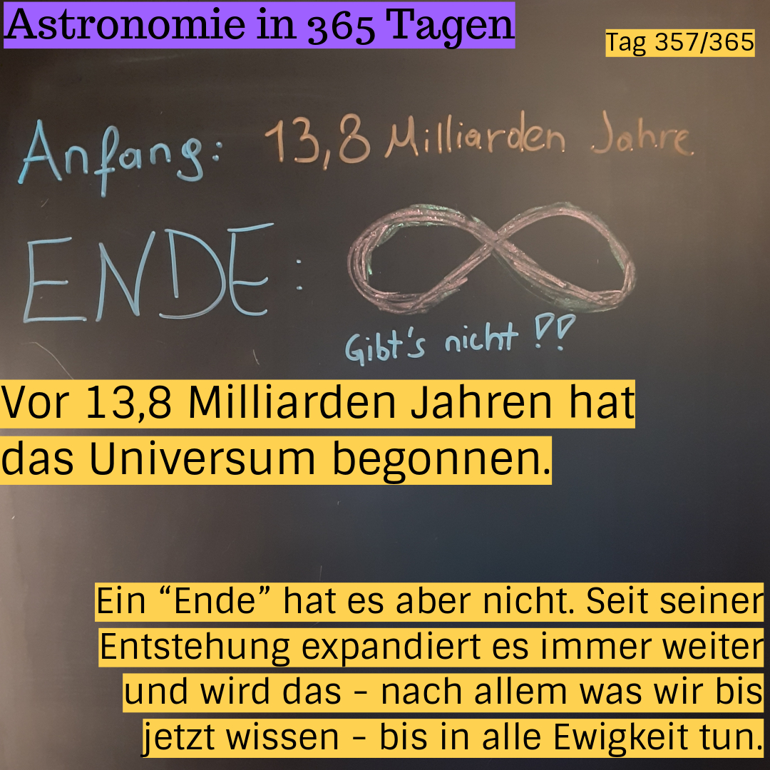 Und bevor ich zu lange darüber nachdenke was ich tue, fang ich einfach an, hab ich mir gedacht. Denn wenn ich einmal anfange, dann kann ich auch nicht mehr aufhören. Auf jeden Fall dann nicht, wenn ich das Projekt „Astronomie in 365 Tagen“ nenne – was ich getan habe. Ich habe am 1. Januar versprochen jeden Tag des Jahres eine astronomische Information mit einem passenden Bild zu veröffentlichen so dass man am Ende des Jahres einen halbwegs brauchbaren Überblick über die Astronomie hat. Also musste ich dass dann auch tun…
