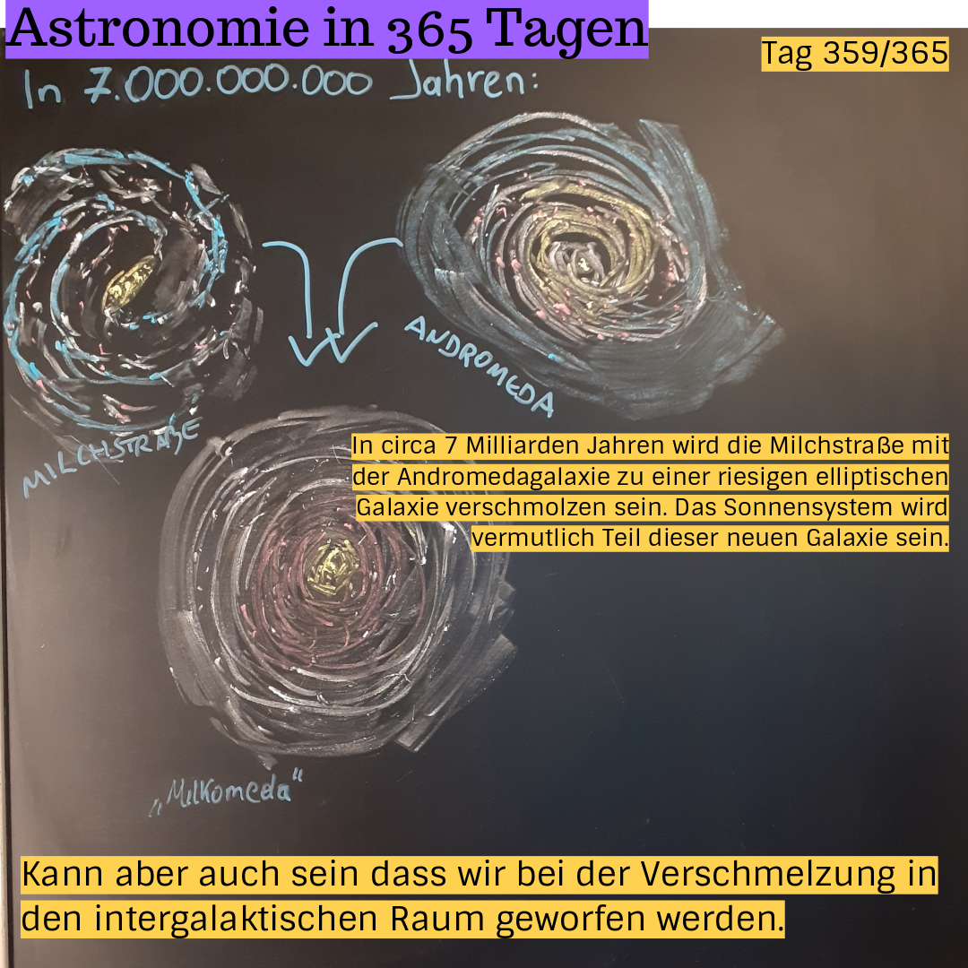 Aus meiner Sicht war „Astronomie in 365 Tagen“ ein Erfolg. Auch Instagram lässt sich nutzen, um Wissenschaft zu vermitteln (was aber sinnvollerweise sowieso nie bezweifelt werden konnte). Ich habe – wie zuvor mit meinen Blogs, Zeitungsartikel, Büchern, Podcasts und anderen Projekten, neue interessante Menschen kennengelernt. Das Projekt wurde nicht nur von der Zielgruppe die ich eigentlich im Sinne hatte wahrgenommen sondern auch von Kolleginnen und Kollegen aus der Wissenschaftskommunikation (siehe zum Beispiel dieses Interview). Nun sind die 365 Tage vorbei und es stellt sich die Frage: Was nun? Ich fände es unfair, die im Laufe des Jahrs dazugekommen Follower nun einfach sitzen zu lassen. Ich schaffe es aber auch kein zweites Jahr jeden Tag ein neues Bild zu zeichnen. Zumindest nicht 2020; für die Zukunft will ich das nicht ausschließen. Aber es gibt ja auch noch andere Möglichkeiten. Die Stories, von denen ich vorhin geschrieben habe zum Beispiel – vielleicht werde ich mich 2020 auf diesen Aspekt konzentrieren und versuchen, das ordentlich zu machen und das volle Potential an Interaktionsmöglichkeiten zu nutzen das Instagram vorgesehen hat. Vielleicht werde ich auch auf andere Art über Astronomie informieren, nur eben nicht mehr in der täglichen Regelmäßigkeit wie bisher.