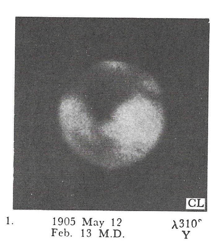 1902 kam ein neuer Mitarbeiter an die Lowell-Sternwarte: Carl Otto Lampland. Der sollte Mars endlich fotografieren. Was ihm am 11. Mai 1905 auch gelang. Das war eine durchaus beeindruckende Leistung. Die kleine hin und her hüpfende Scheibe eines Planeten im Teleskop auf ein fotografisches Bild zu bannen erschien damals fast unmöglich. Aber Lampland hat es hingekriegt und Lowell hat sofort eine entsprechende Nachricht verbreitet. „Die Kanäle des Mars – Fotografiert“ war der Titel der kurzen Notiz, die im Juli 1905 in den Fachzeitschriften veröffentlicht wurde. Endlich hatte man ein Bild, auf dem die Kanäle zu sehen war. Allerdings nicht für alle. Am Ende seines Artikels hat Lowell geschrieben: „Von einer Reproduktion der beiden Photographien muß ich absehen, da die vielen feinen Details nicht genügend zum Ausdruck kommen würden“. Was tatsächlich problematisch war: Das fotografische Bild war winzig und die Drucktechnik nicht genau genug. In Zeitungen abgebildet würde man nichts von den Kanälen sehen. Die Kanäle konnte wieder nur Lowell im Original des Fotos erkennen, der Rest der Welt hatte leider nichts davon.